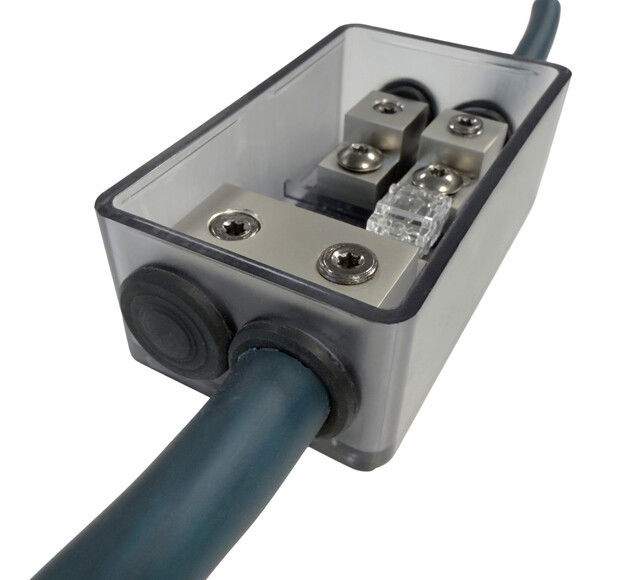 Kabel- och utgångspunkterna har gummi-O-ringar som kan modifieras för att passa kabeltjockleken. Inuti blocken har en trådend ärmar som gör att du kan säkra kablarna mycket fast på plats.
