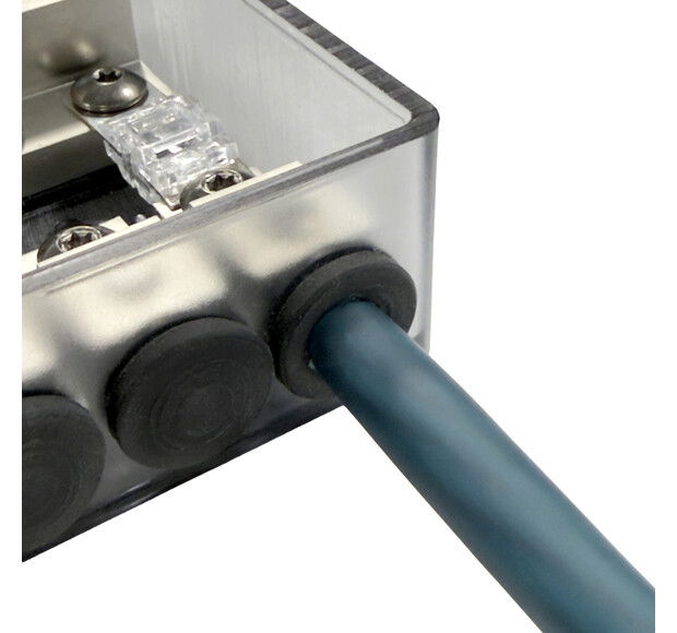 Kabel- och utgångspunkterna har gummi-O-ringar som kan modifieras för att passa kabeltjockleken.