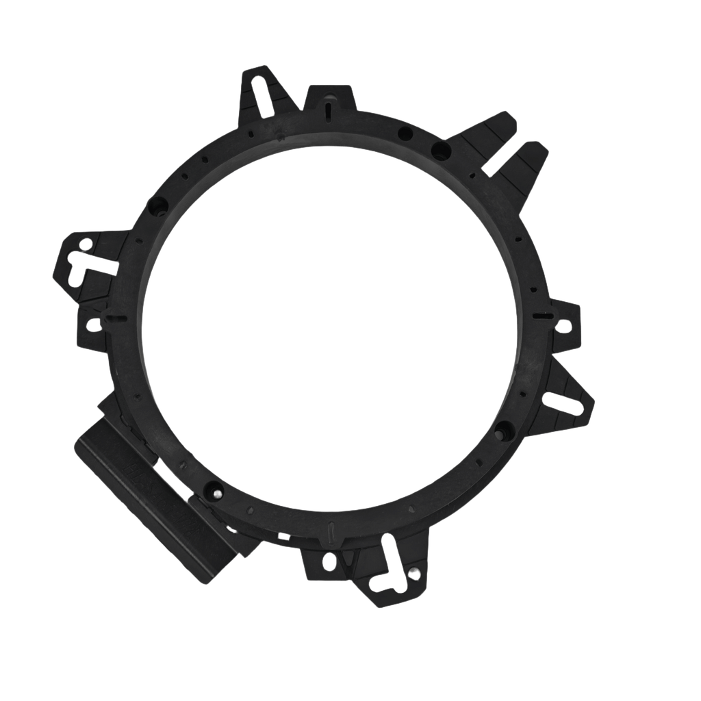 - Stansat stålchassi med pulverlackering – Minskar vibrationer och ger renare ljudbild.