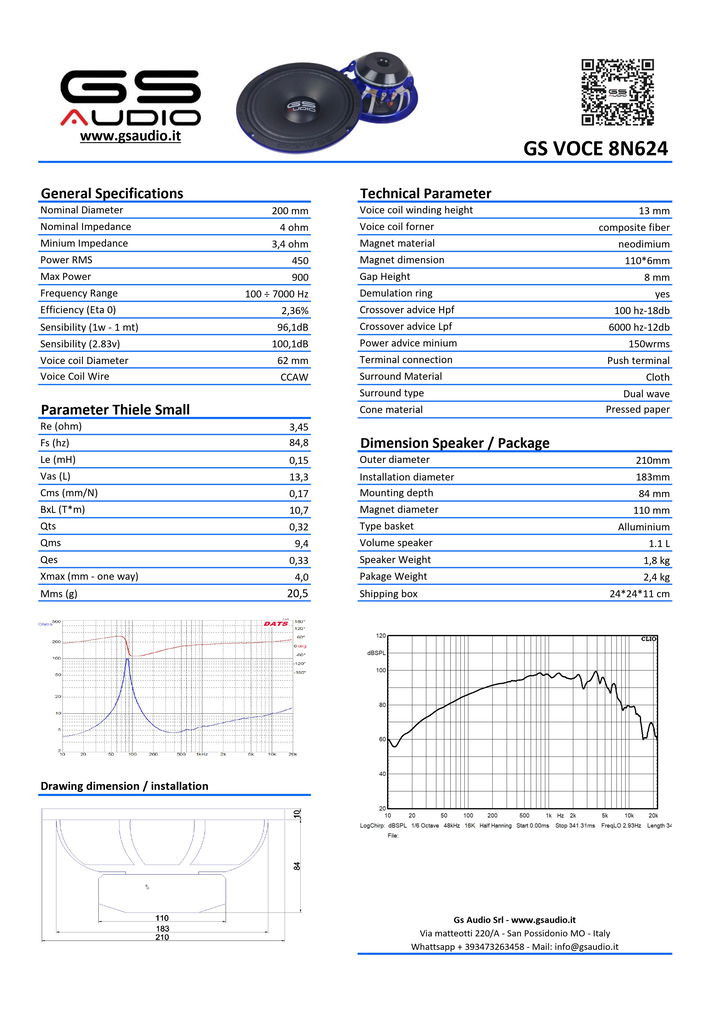 En helt galen 8" högtalare på 450Wrms från GS Audio's Voce serie!