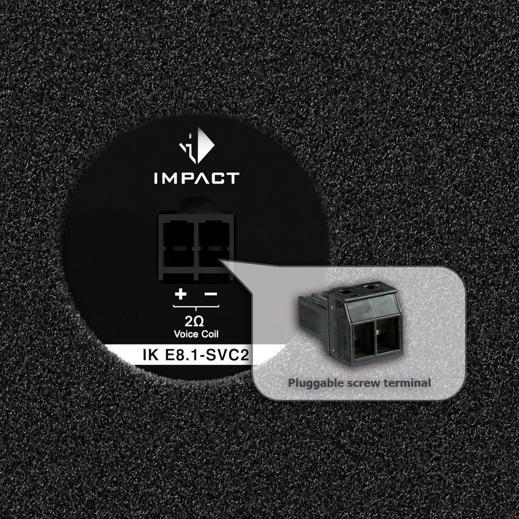 Med den instickbara skruvterminalen är installation eller borttagning av subwoofern snabb och säker. Den enda 2 ohms talspolen ger grunden för maximal effekt från förstärkaren.