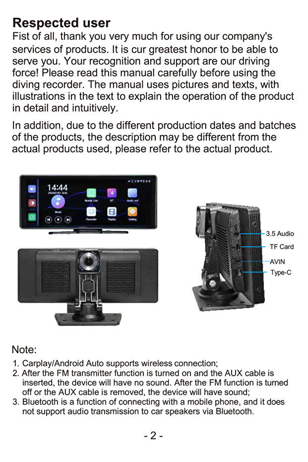 NF-CP10 stödjer trådlös CarPlay, Android Auto samt Apple AirPlay och Android Mirror Link för enkel skärmspegling av din smartphone. Enheten ansluts snabbt via Bluetooth och Wi-Fi, och du kan även välja AUX- eller FM-sändning för ljudöverföring direkt till bilens högtalare. Gränssnittet är intuitivt och snabbt, vilket gör att du kan växla mellan appar, musik och kameravyer med ett enda tryck.